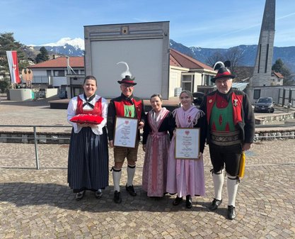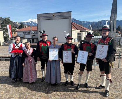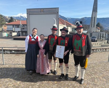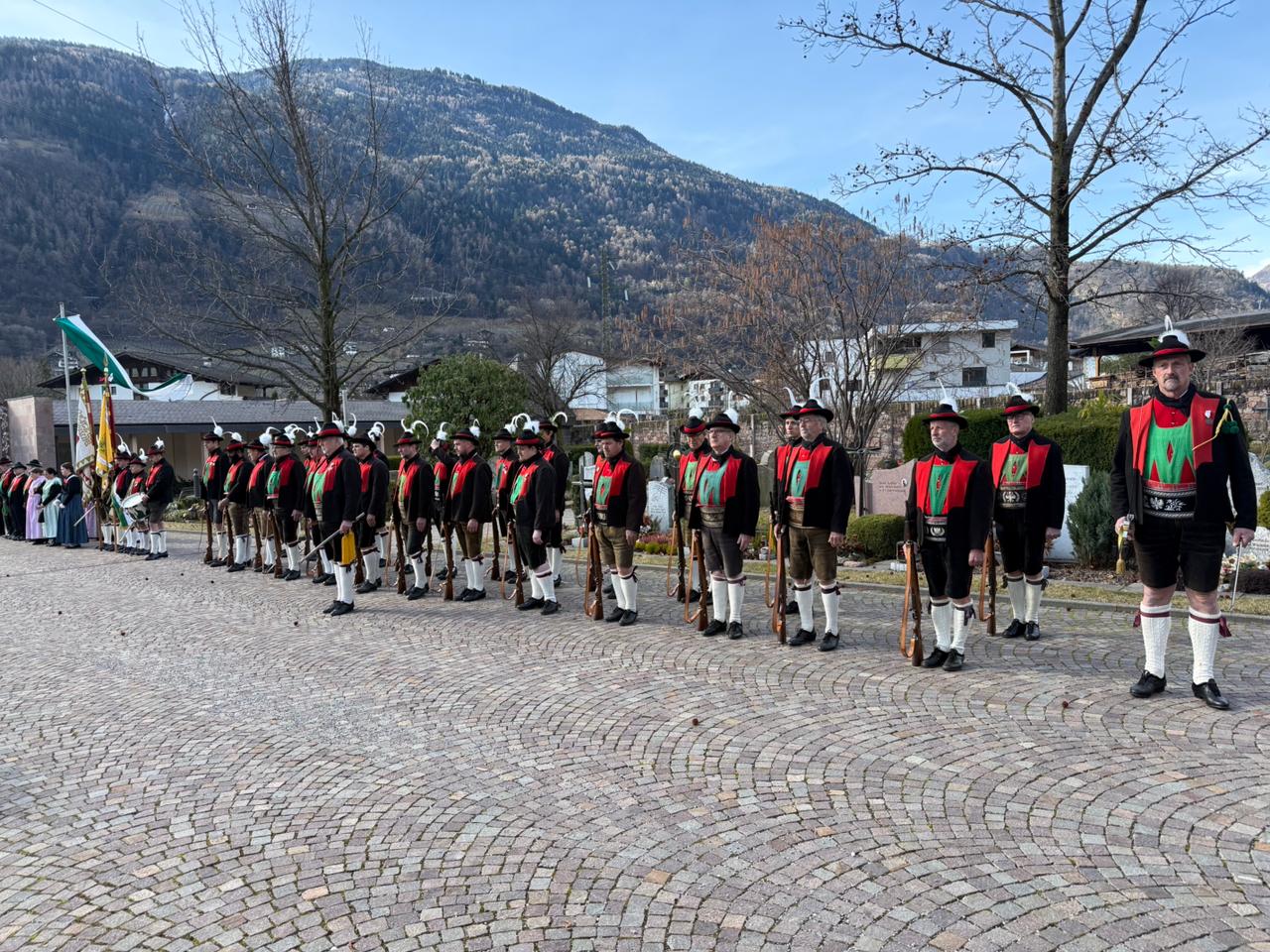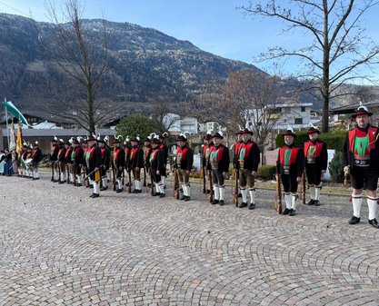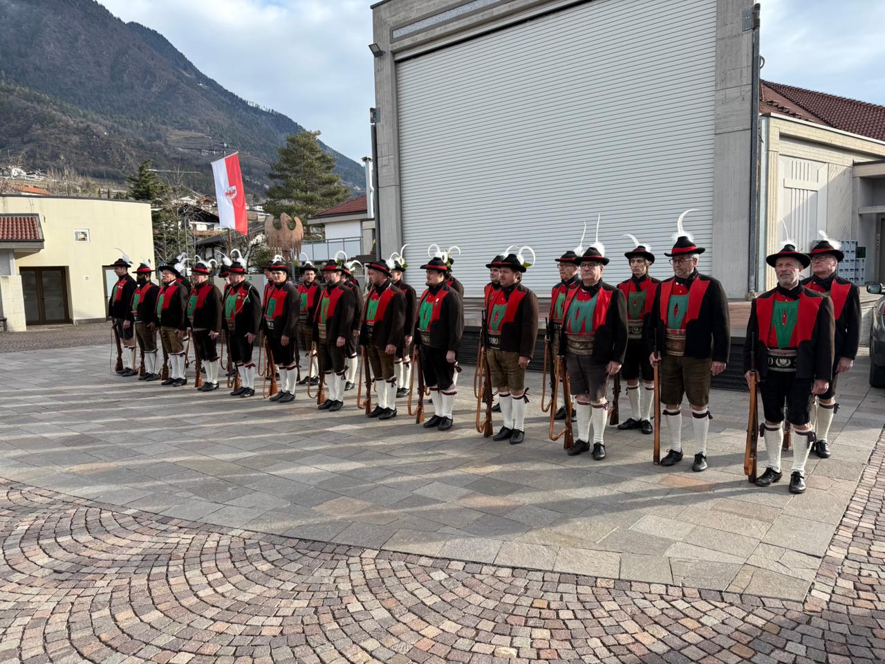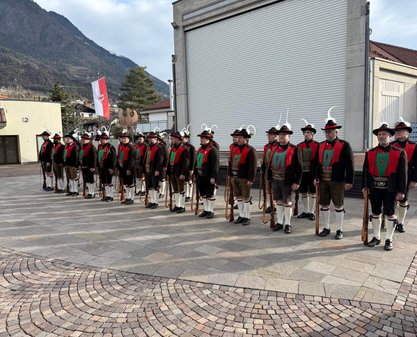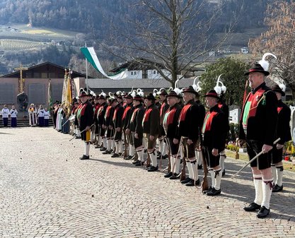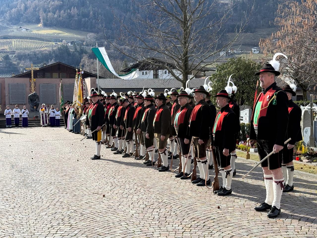 Am Vormittag des Andreas Hofer Sonntag 22. Februar 2026 feierte man gemeinsam die heilige Messe und danach marschierten wir gemeinsam mit der Bevölkerung zum Friedhof, wo mir Algunder Schützen für die gefallenen beider Weltkriege dachten und ihnen zu Ehren eine exakte Ehrensalve unter dem Kommando von Hauptmann Stefan Gutweniger abfeuerten.