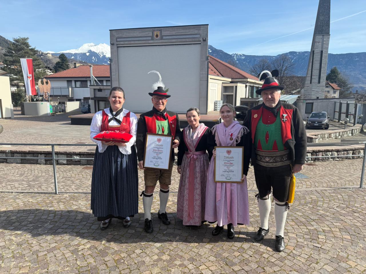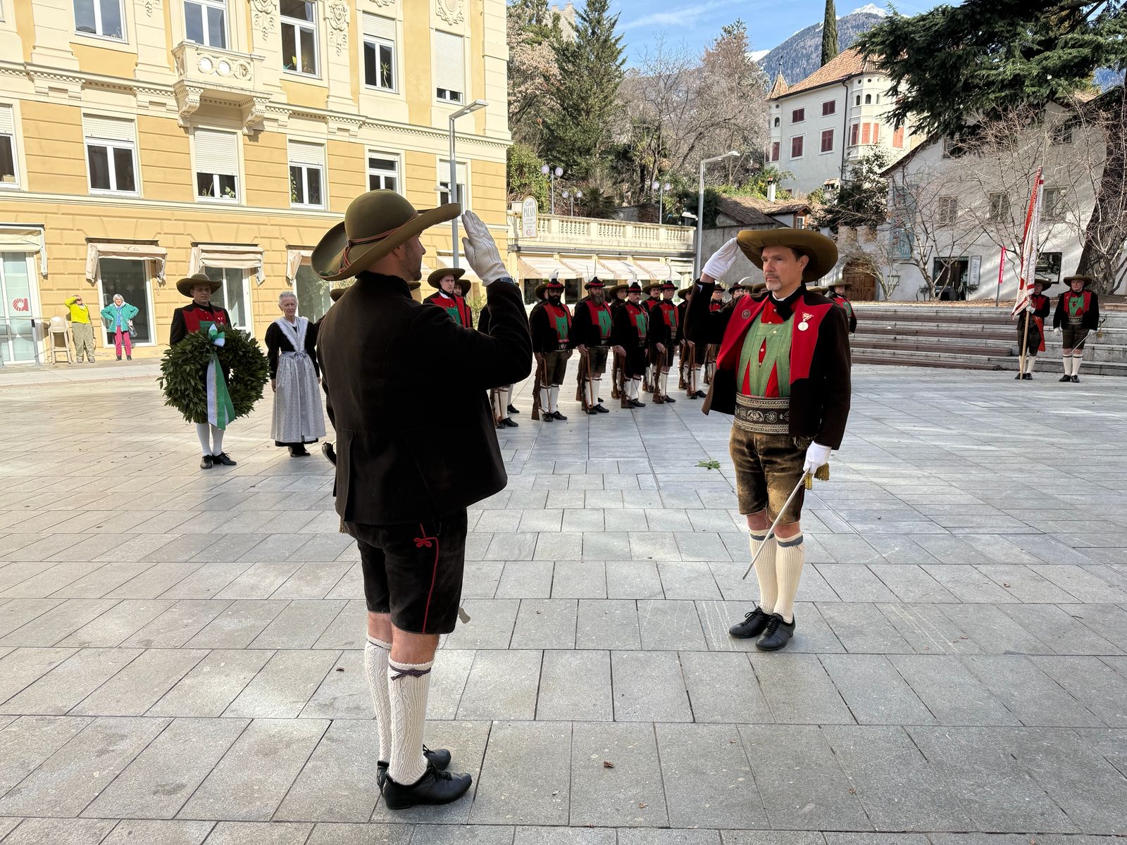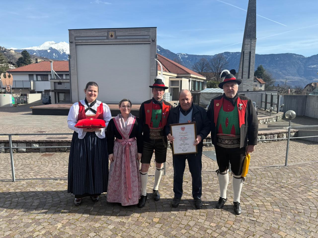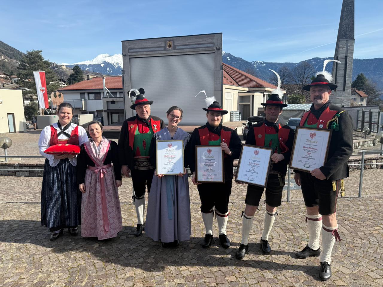 Am Vormittag des Andreas Hofer Sonntag 22. Februar 2026 feierte man gemeinsam die heilige Messe und danach marschierten wir gemeinsam mit der Bevölkerung zum Friedhof, wo mir Algunder Schützen für die gefallenen beider Weltkriege dachten und ihnen zu Ehren eine exakte Ehrensalve unter dem Kommando von Hauptmann Stefan Gutweniger abfeuerten.