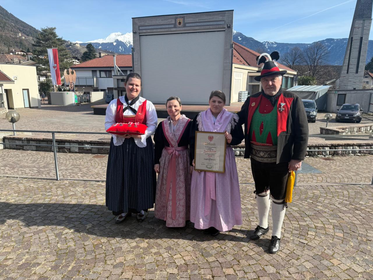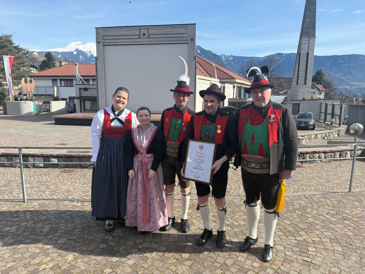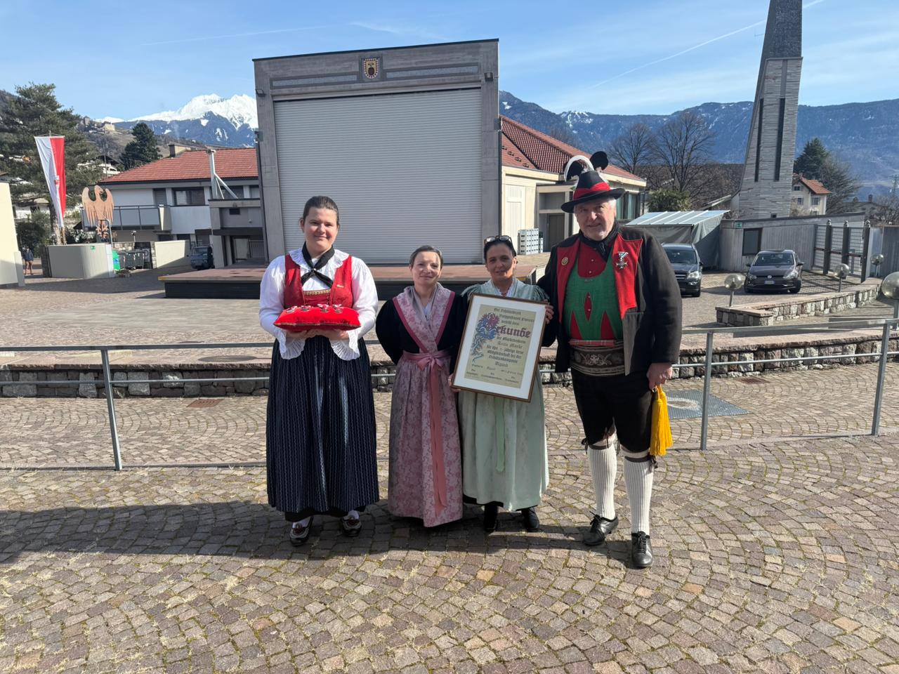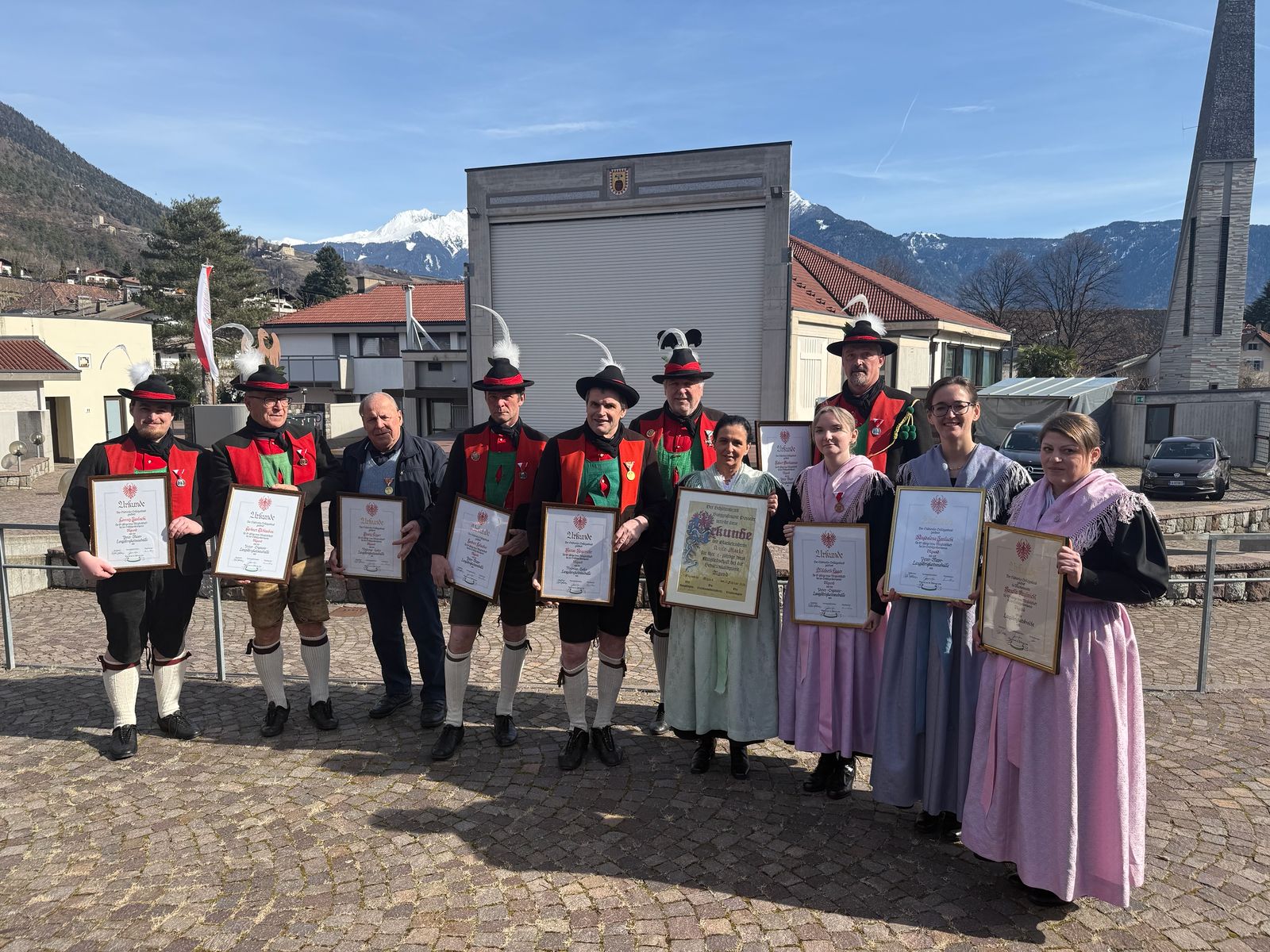 Am Vormittag des Andreas Hofer Sonntag 22. Februar 2026 feierte man gemeinsam die heilige Messe und danach marschierten wir gemeinsam mit der Bevölkerung zum Friedhof, wo mir Algunder Schützen für die gefallenen beider Weltkriege dachten und ihnen zu Ehren eine exakte Ehrensalve unter dem Kommando von Hauptmann Stefan Gutweniger abfeuerten.