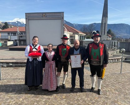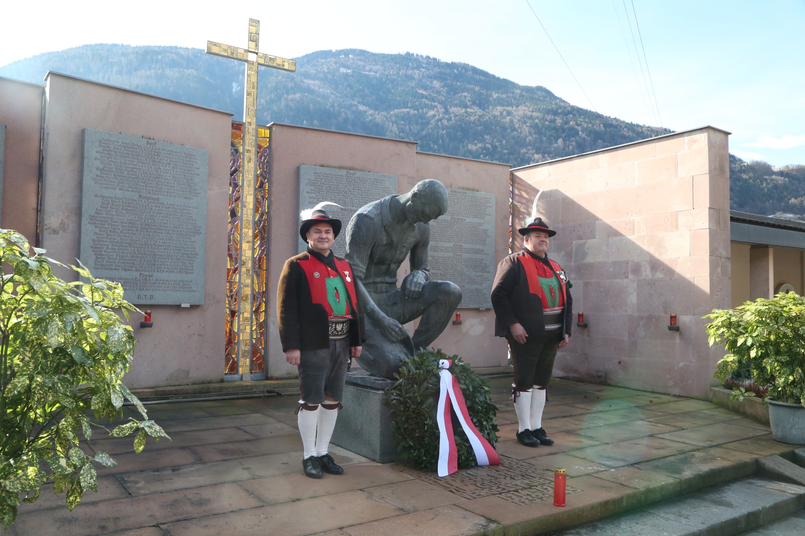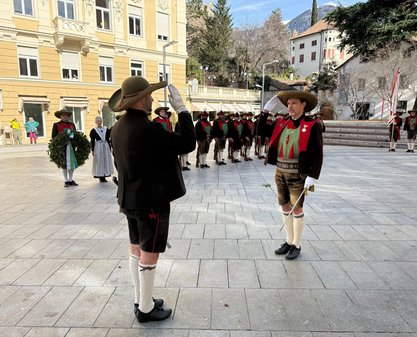 Am Nachmittag fuhren eine Abordnung nach Meran zur Landes Gedenkfeier. Gedenkredner war Nationalratsabgeordneter und Südtirolsprecher Christopher Ranzmaier.
